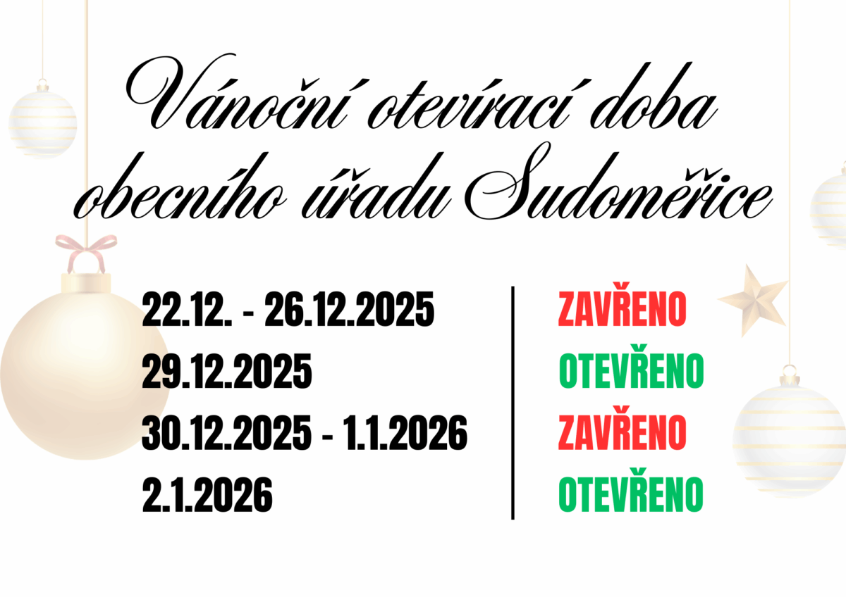 níže naleznete upravenou vánoční otevírací dobu obecního úřadu v Sudoměřicích.