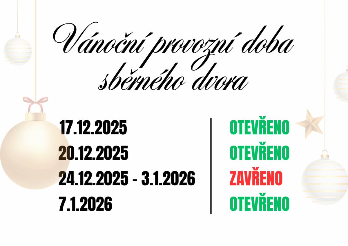 níže naleznete upravenou vánoční provozní dobu sběrného dvora v Sudoměřicích.