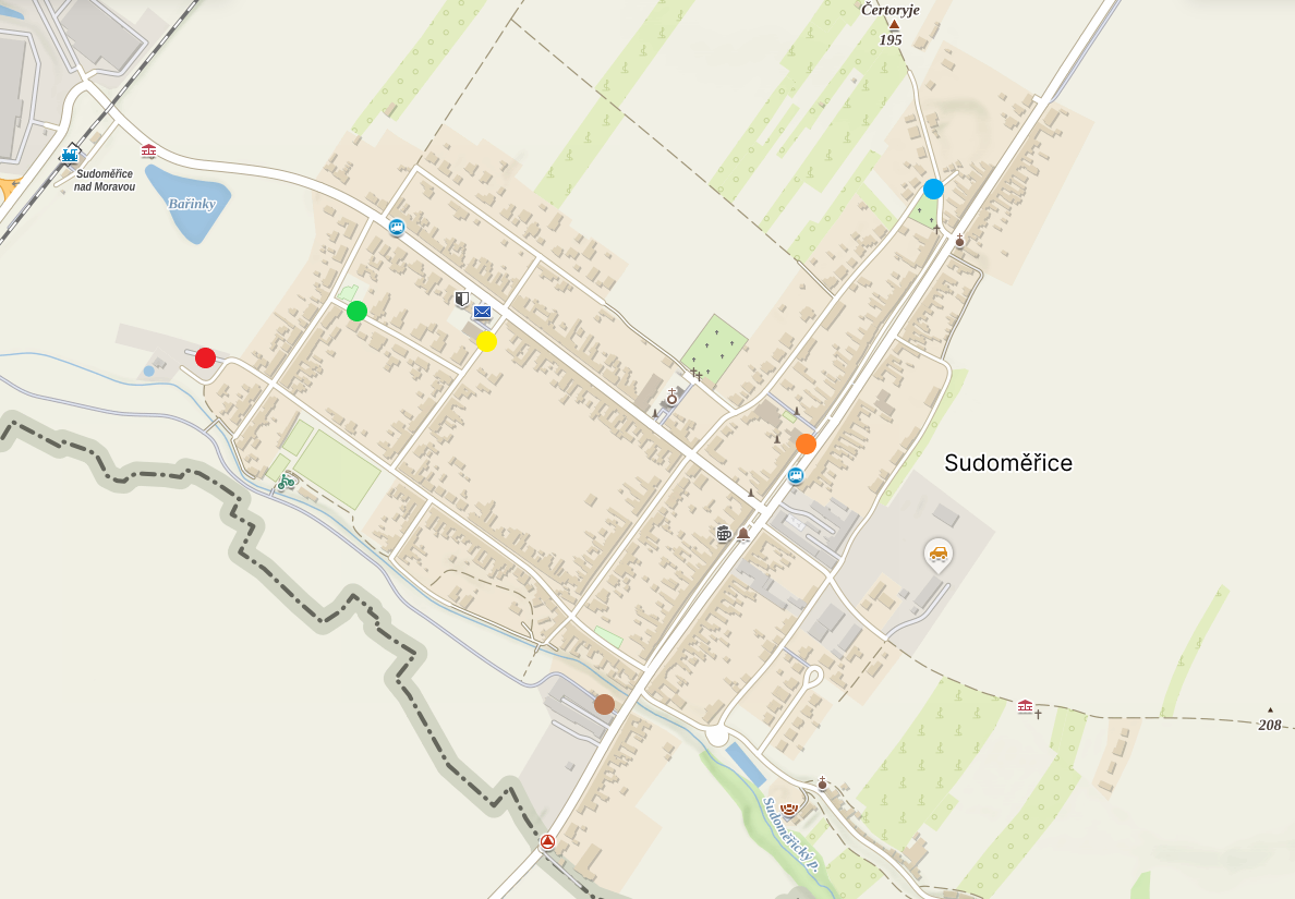 - hnědá (sběrné hnízdo – papír, plast, sklo)